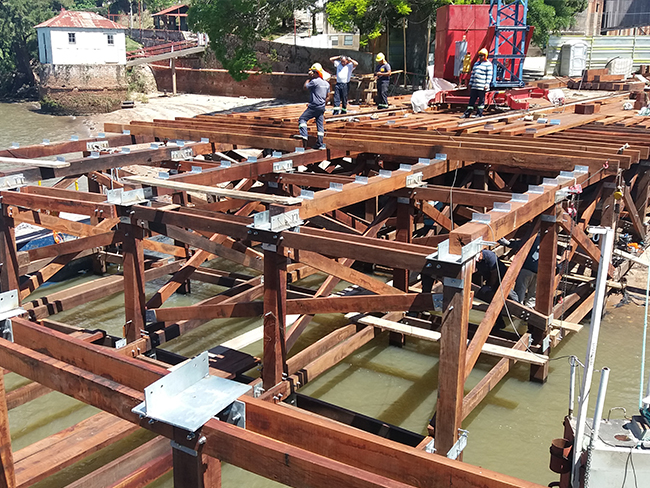 Reconstrucción de muelle de madera en ex Frigorífico Anglo de Fray Bentos. Años 2020-2021.
