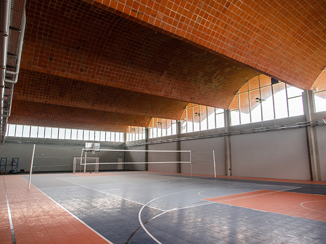 Gimnasio. Bóvedas de doble curvatura. Área cubierta 1.300m2. Ciudad de Mercedes, Soriano.