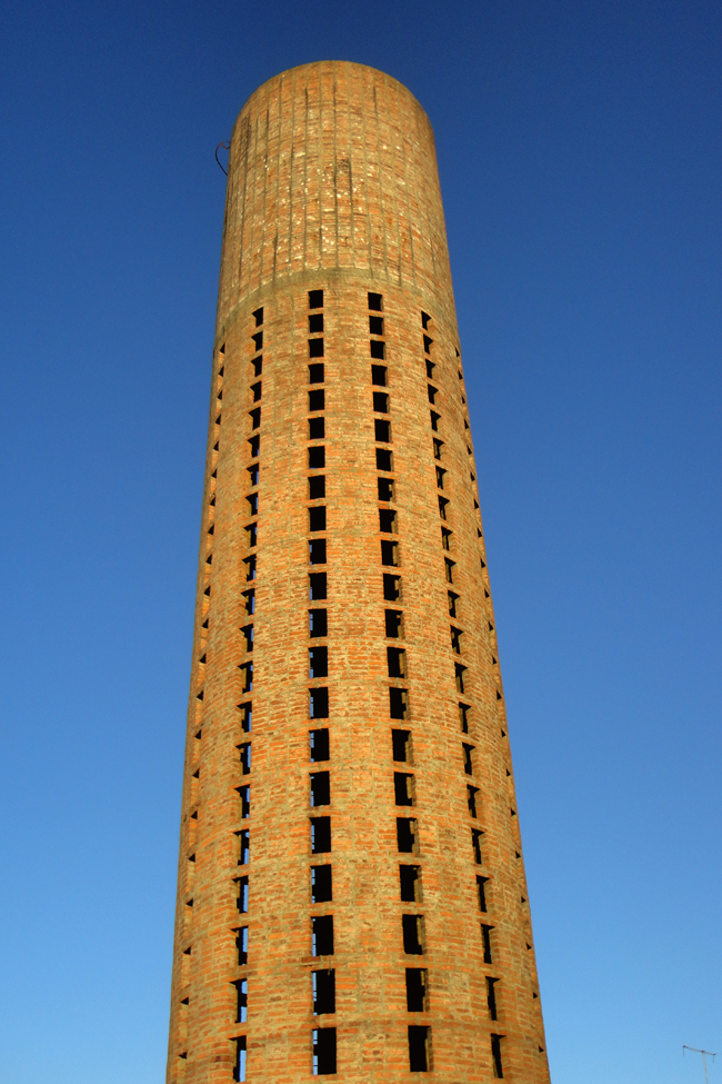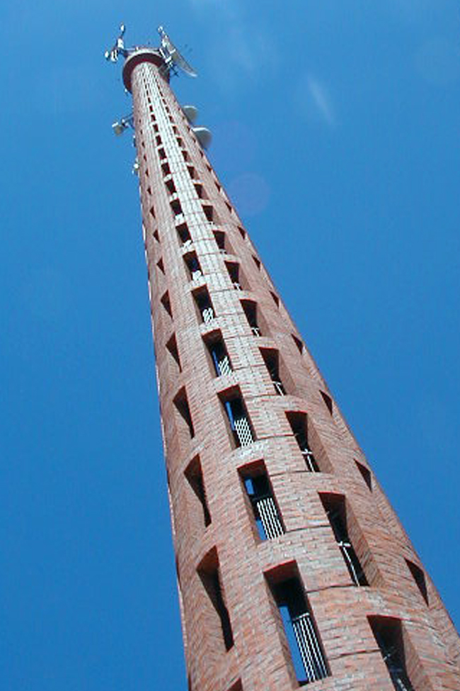Torre de comunicaciones para televisión en ladrillo calado.