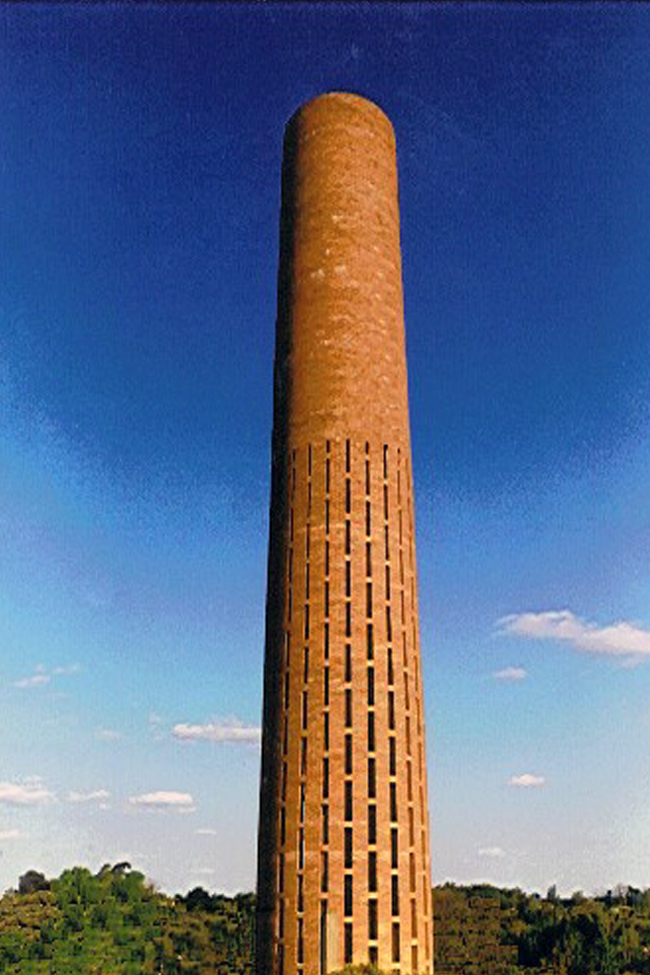 Torre de comunicaciones para televisión en ladrillo calado.